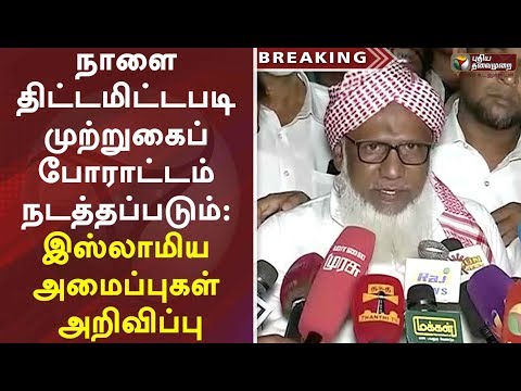 நாளை திட்டமிட்டபடி முற்றுகைப் போராட்டம் நடத்தப்படும்: இஸ்லாமிய அமைப்புகள் அறிவிப்பு - Puthiya Thalaimurai Tv Live - நாளை திட்டமிட்டபடி முற்றுகைப் போராட்டம் நடத்தப்படும்: இஸ்லாமிய அமைப்பு...
